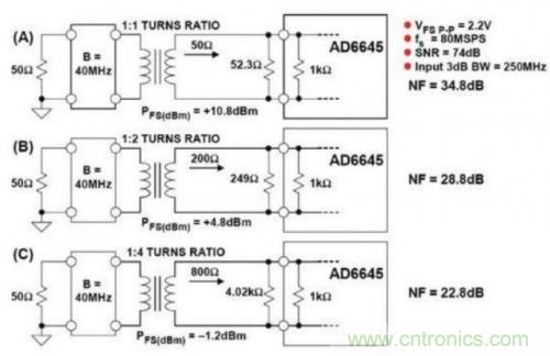 過(guò)采樣并不是改善ADC噪聲系數(shù)的唯一途徑。您你可以使用變壓器在“無(wú)噪聲”增益下提高ADC的輸入電壓。
