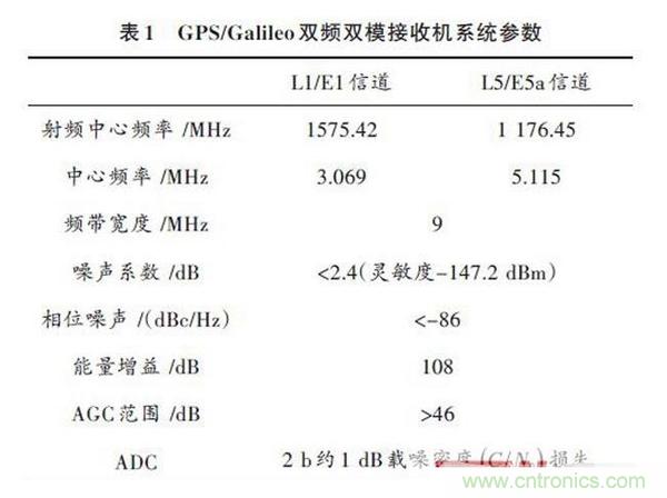 在參考接收機(jī)的性能要求的基礎(chǔ)上,設(shè)計(jì)GPS接收機(jī)射頻前端芯片的各項(xiàng)系統(tǒng)指標(biāo)見表1.