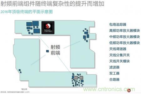 一方面,高端智能手機不斷推陳出新,屏幕越來越大、機身越來越輕薄,這些變化直接導致射頻前端組件的物理空間減少;另一方面,考慮到大尺寸屏幕對電池續航的影響,射頻前端的設計要比以往更重視電源使用效率;第三,網速越來越快,射頻前端模塊正在變得越來越復雜。