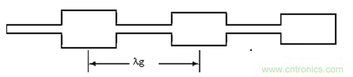 通過微帶傳輸線將貼片串聯組成串饋駐波陣,貼片間距為;其示意圖如圖3所示
