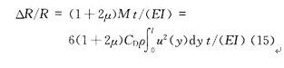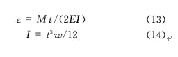 懸梁的應變通過式(13)來計算,E是楊氏模量,I是慣性矩。慣性矩計算公式是式(14),t是懸梁的厚度,ω是懸梁的寬度,則
