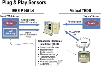 IEEE1451.3啟動處在多分支網絡中的傳感器的運行;于2003年通過的IEEE P1451.4規定與數字傳感器相關的數據(像傳感器的類別、型號、操作參數以及位置等)必須能夠以電子數據表的格式從整合在傳感器中的EEPROM(電可擦除只讀存儲器)存儲器中讀取,這種數據表被稱為變換器電子數據表(TEDS-Transducer Electronic Data Sheet)。IEEE P1451.4標準極大地簡化了傳感器的布線以及更換故障傳感器的問題。它同時也免除了傳感器在設置和校準方面的人工干預,這種干預即費時又易出錯。這樣傳感器就成了即插即用的裝置。在國家儀器網站(National Instruments’ web site)中有一個有效TEDS的數據庫,它包括了可以在IEEE P1451網絡中使用的各種老式的或沒有EEPROM的傳感器的專門資料。IEEE 1451.5標準仍在審核階段,它規定的是將TEDS連接到無線網絡中的必要條件,如與802.11、藍牙或ZigBee等的連接。最近又提出了IEEE 1451.6標準議案,它定義TEDS和CAN總線的接口。