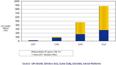 市場調研機構iSuppli認為,移動傳感器(motion sensors)將代替傳統的傳感器成為MEMS市場的主要推動力,至少在2012年之前會是這樣。尤其是加速計(accelerometer),它在便攜式消費電器中將被用來啟動一系列高級界面功能。傳感器在消費電器中的應用正在迅速飆升,像用于游戲、筆記本電腦和數碼相機中的移動傳感器就是實例。雖然以傳感器為基礎的微型機電系統(MEMS-microelectromechanical systems)的價格已經在迅速下降,它們還是太昂貴而不能被用在一些對價格敏感的消費產品中。