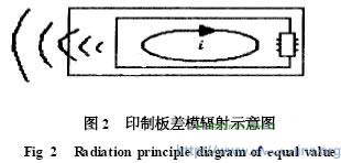 式中l(wèi)為短單極天線長度,共模電壓轉(zhuǎn)換成了差模電流i。減小地電壓和將差模電流旁路到地可減小共模輻射。