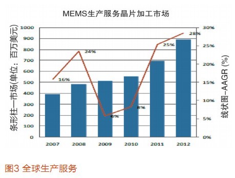 Yole Developpement公司給出了MEMS代工的發展(如圖3),也可以看到2010年以后,將迎來新一波浪潮。