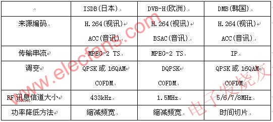 由韓國所主導的DMB,又可分為使用地面廣播的T-DMB和采用衛星的S-DMB兩種技術,是由韓國已采用近十年的Eureka-147DAB技術改良而來。其中T-DMB將ITU-TH.264編碼技術用于視訊,將MPEG-4位分片算術編碼技術用于音訊,然后,它透過采用MPEG-4同步層和MPEG-2傳輸串流將它們連同額外數據一起進行多任務處理。韓國訂于2004年底推出DMB技術的移動廣播電視,腳步算是相當快速。