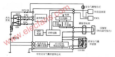 此外,氣囊系統還有備用電源,備用電源電路由電源控制電路和若干電容器組成。當汽車發生碰撞導致蓄電池和發電機與氣囊系統斷開時,備用電源在一定時間內(一般為6秒)可以維持氣囊系統供電。