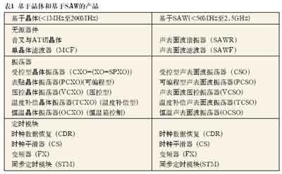 在有線與無線市場迅猛增長的推動下,石英晶體及其高頻版SAW器件正廣泛用于各個領(lǐng)域,小到電子玩具中簡單的無源石英晶體,大到用于最先進(jìn)的電信網(wǎng)絡(luò)骨干網(wǎng)定時的復(fù)雜同步定時模塊(STM),如表1所示。