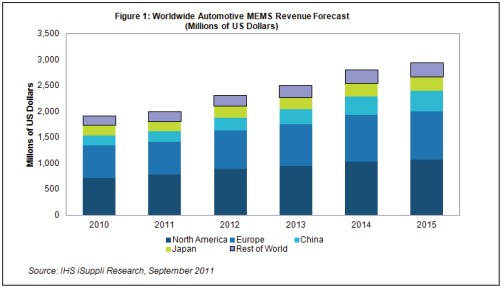 - 2010-2015年中國仍將是全球第三大汽車MEMS傳感器用戶