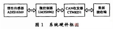 該系統(tǒng)硬件主要包括ADIS16365,CTM8251,LM3S8962。系統(tǒng)硬件框圖如圖1所示。