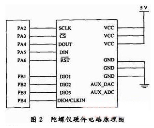 陀螺儀硬件電路原理圖如圖2所示,選用LM3S8962自帶的SPI硬件接口對(duì)ADIS16365進(jìn)行操作,在電路設(shè)計(jì)中只需要直接將LM3S8962的SPI硬件I/O接口與ADIS16365相應(yīng)的接口連接起來(lái)。
