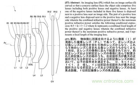 緊接著在2012年12月索尼曲面?zhèn)鞲衅鲗S苗R頭專利公布,針對1.4“及以下傳感器進(jìn)行設(shè)計,結(jié)合索尼曲面CMOS傳感器,可以有效消除像場彎曲現(xiàn)象,改善邊緣畫質(zhì)。