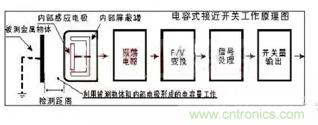 電容式接近傳感器的工作原理:電容式接近傳感器由高頻振蕩器和放大器等組成,由傳感器的檢測面與大地間構(gòu)成一個電容器,參與振蕩回路工作,起始處于振蕩狀態(tài)。當(dāng)物體接近傳感器檢測面時,回路的電容量發(fā)生變化,使高頻振蕩器振蕩。振蕩與停振這二種狀態(tài)轉(zhuǎn)換為電信號經(jīng)放大器轉(zhuǎn)化成二進(jìn)制的開關(guān)信號。