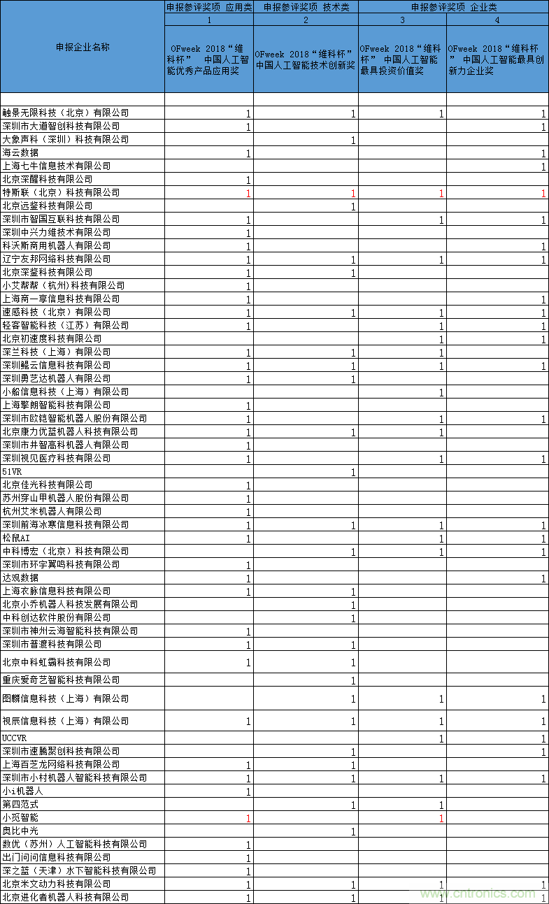本次評(píng)選是2018年度唯一一項(xiàng)由權(quán)威行業(yè)門(mén)戶舉辦的重大賽事,全程免費(fèi),活動(dòng)費(fèi)用由評(píng)選組委會(huì)承擔(dān),企業(yè)無(wú)須支付任何參評(píng)或獎(jiǎng)項(xiàng)費(fèi)用;評(píng)委團(tuán)由各大投資機(jī)構(gòu)、協(xié)會(huì)、院校、孵化平臺(tái)以及著名投資人組成,嚴(yán)格把關(guān);獎(jiǎng)項(xiàng)覆蓋全人工智能產(chǎn)業(yè)鏈結(jié)構(gòu),設(shè)立4大獎(jiǎng)項(xiàng)讓所有人工智能企業(yè)都有機(jī)會(huì)競(jìng)逐獎(jiǎng)項(xiàng);并且參評(píng)企業(yè)還可以免費(fèi)參與同期OFweek舉辦的中國(guó)人工智能大會(huì),與資深專(zhuān)家和行業(yè)大咖面對(duì)面,學(xué)習(xí)最前沿、最熱門(mén)實(shí)用的市場(chǎng)趨勢(shì)及技術(shù)應(yīng)用。