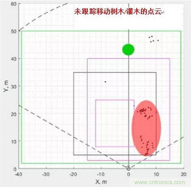 圖2顯示了使用毫米波技術(shù)的入侵檢測(cè);毫米波傳感器分析場(chǎng)景中對(duì)象的速度,過濾掉移動(dòng)背景中的運(yùn)動(dòng),僅跟蹤人物。