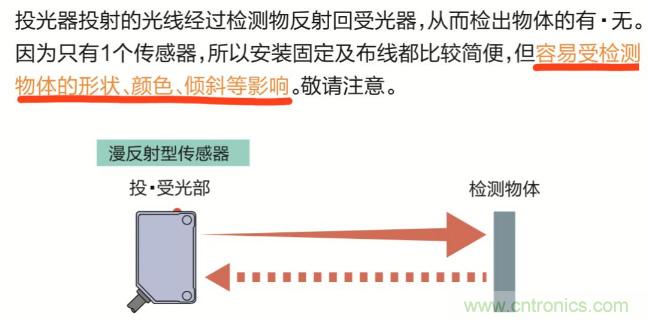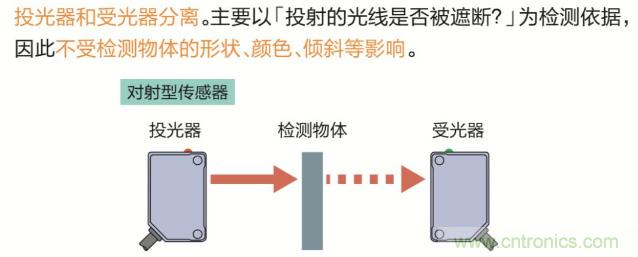 對(duì)射型光電傳感器:不受檢測(cè)物體的形狀、顏色、傾斜等影響