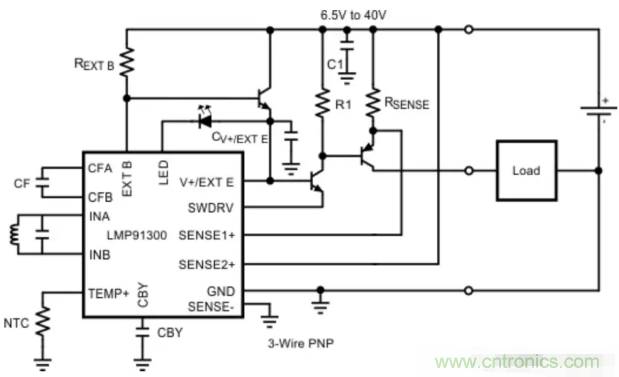 內部穩壓器允許該器件在6.5V至40V的電源范圍內工作。可以對輸出進行編程,以NPN或PNP模式驅動外部晶體管。