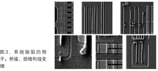 傳統(tǒng)的在線監(jiān)控策略主要關(guān)注像隨機(jī)微粒這樣的隨機(jī)缺陷。盡管檢測隨機(jī)微粒很重要,但更先進(jìn)的技術(shù)節(jié)點(diǎn)出現(xiàn)了很難檢測的系統(tǒng)缺陷(圖3)。即使檢測后,從大量缺陷計(jì)數(shù)中識別這些缺陷也頗具挑戰(zhàn)性,每晶圓50個(gè)缺陷的取樣率僅是105個(gè)缺陷數(shù)據(jù)的0.05%。隨著系統(tǒng)缺陷的增加,人們更多關(guān)注識別工藝開發(fā)早期的作圖問題以減少產(chǎn)品推出周期。